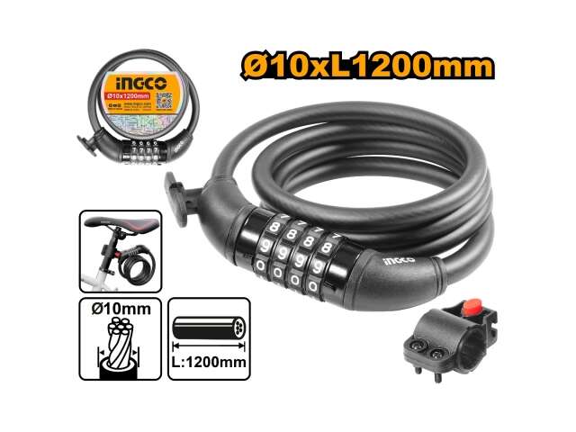 CANDADO PARA BICICLETA 10X1200MM C/ COMBINACION INGCO DBK21012