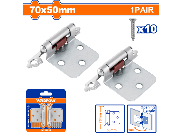 PAR BISAGRAS GABINETE PLATEADA 70X50 MM WADFOW WYD1K04