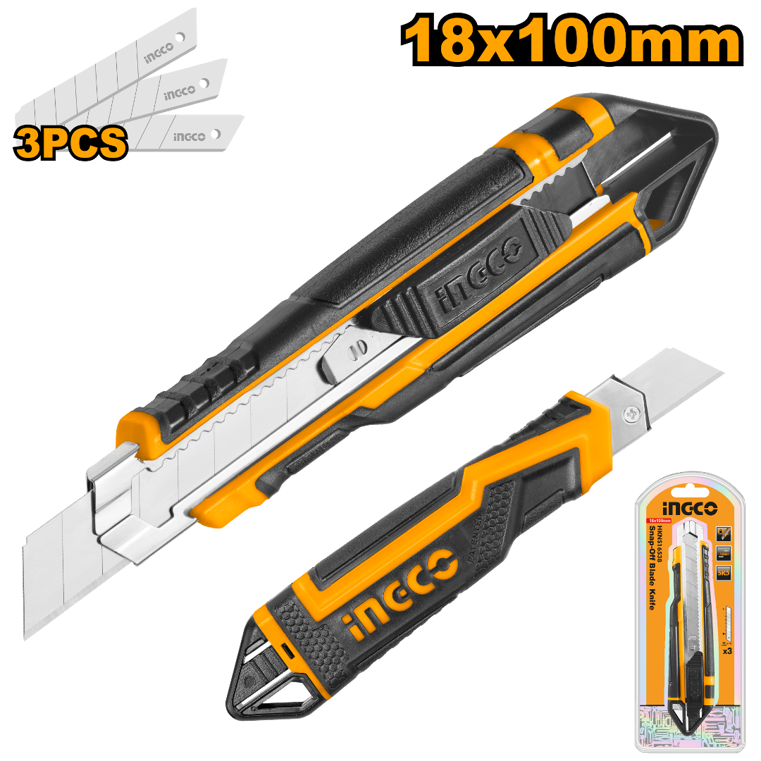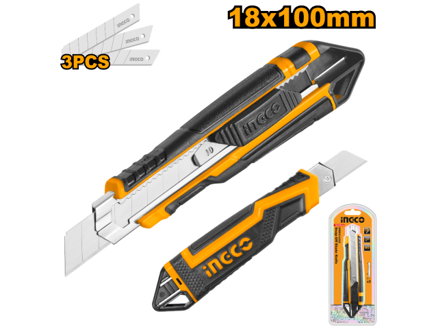 TRINCHETA 18MM INGCO HKNS16538 CON 3 HOJA MATERIAL SK5 SOFT GRIP