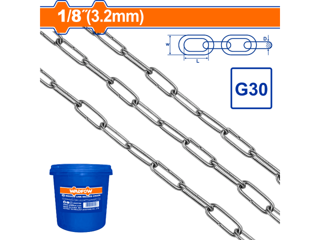 CADENA PATENTE G30 ESLABON SOLDADO 3.2MM 1/8" X 125MT WADFOW WTLT1B03