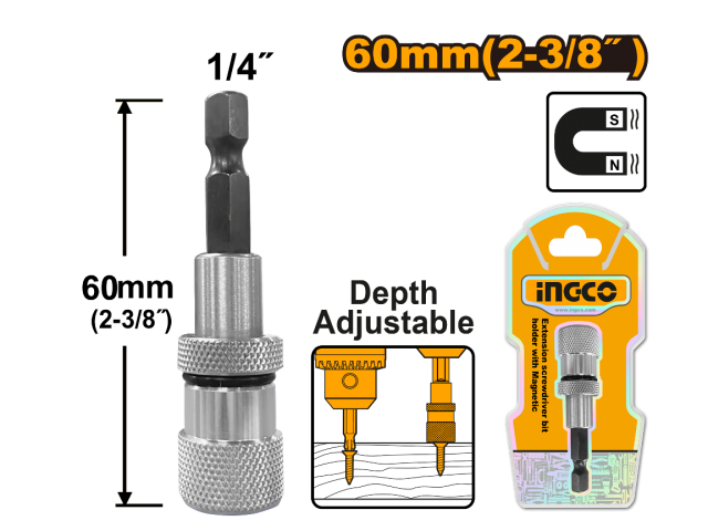 SET X 2 ADAPTADOR MAGNETICO 60MM 1/4" HEXAGONAL P/ATORNILLADOR INGCO - ABH50608