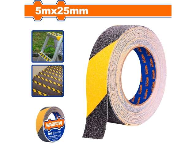 CINTA WARNING ANTI DESLIZANTE AMARILLA Y NEGRA 5MT X 25MM WADFOW WVA3535