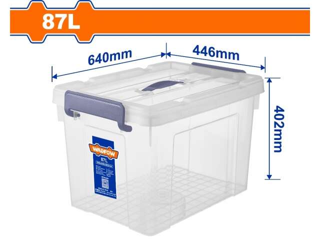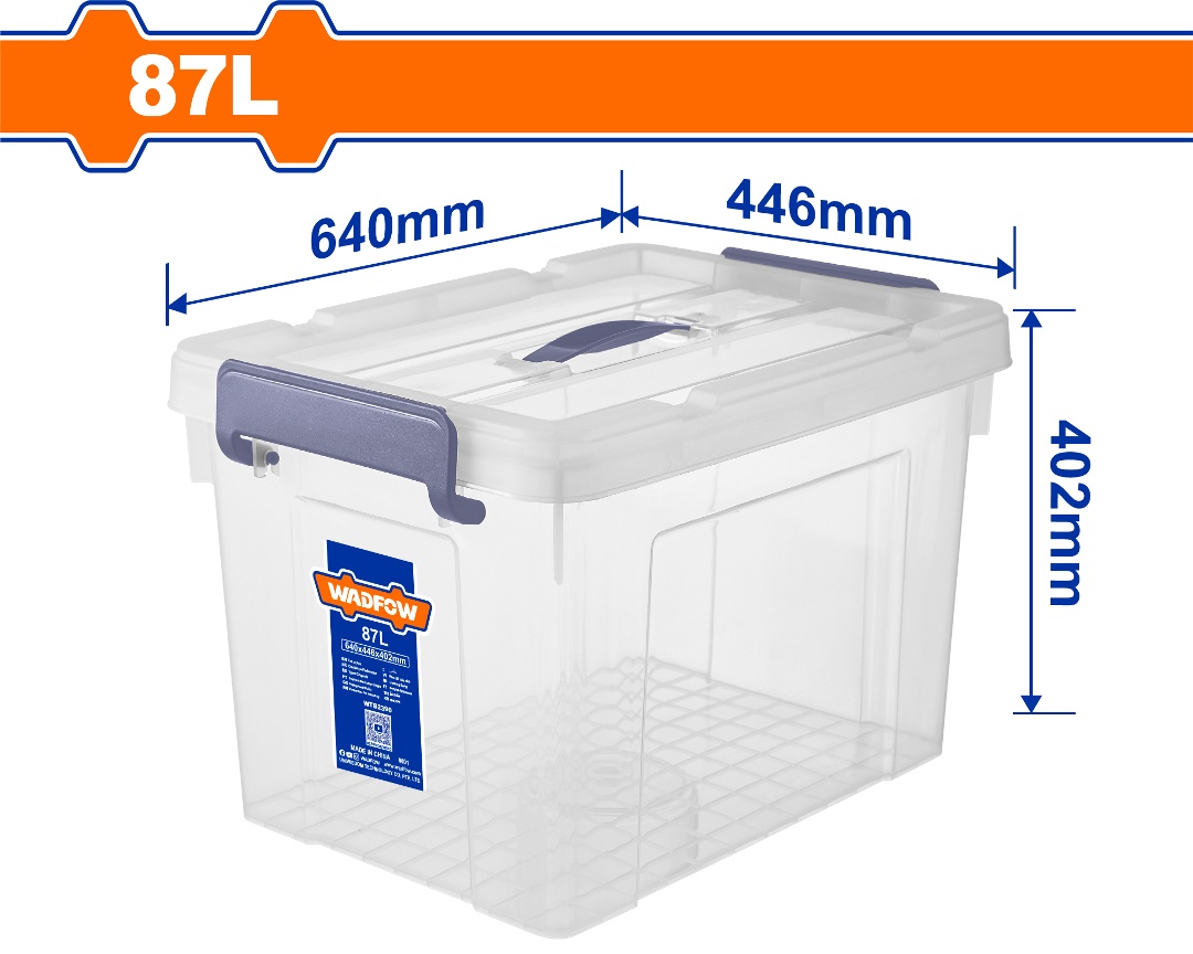 CONTENEDOR PLASTICO APILABLE TRANSPARENTE 87LT WADFOW WTB2390