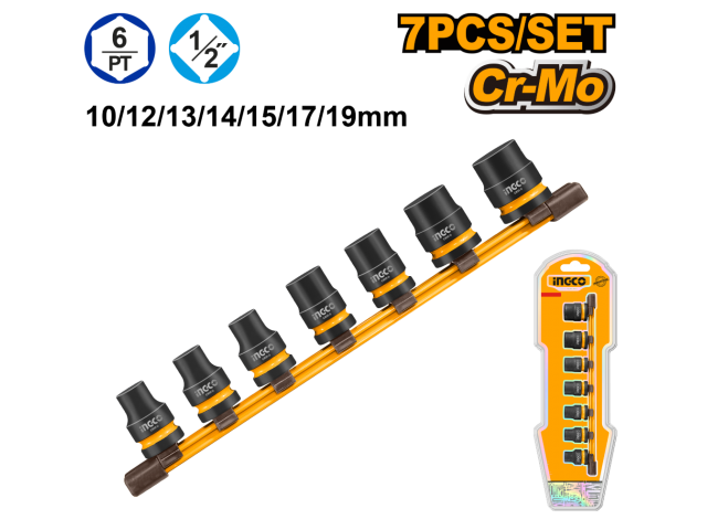 SET X7 DADOS DE IMPACTO 1/2" CR-MO INGCO HKISSD12071