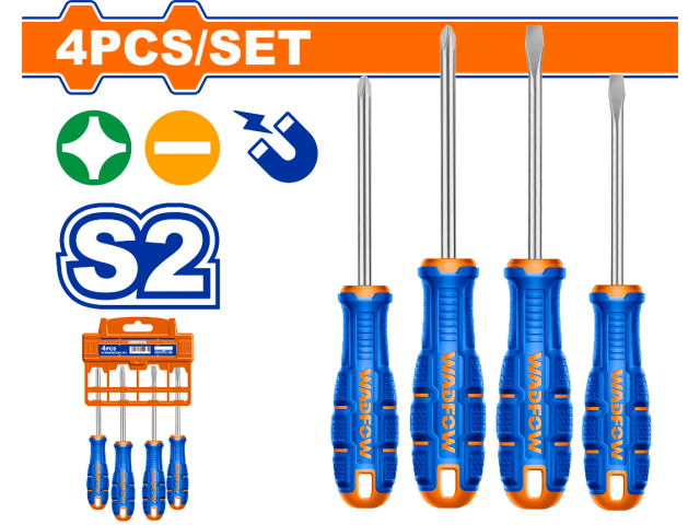 SET X 4 DESTORNILLADORES S2 PALETA/PHILLIPS IMANTADO WADFOW WSSA404