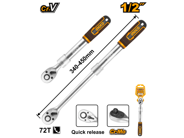 LLAVE CRIQUE EXTENSIBLE 1/2" 72T 340-450MM CR-V+CRMO INGCO HRTH08128L