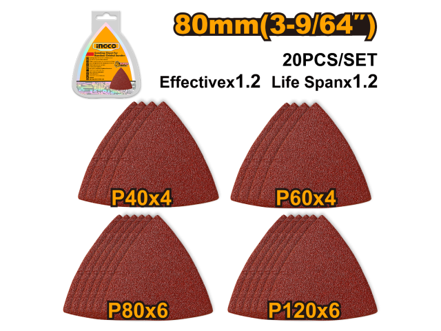 SET PAPEL LIJA X20 DELTA TRAINGULO INGCO AKTS080201
