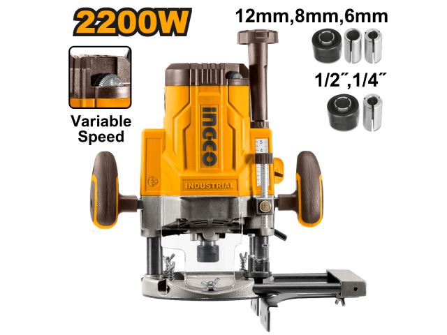 ROUTER FRESADORA 2200W Ø 6, 8, 12 MM INGCO RT22008 INDUSTRIAL