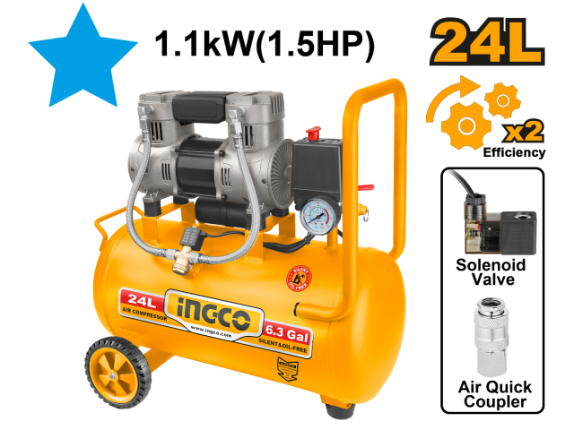 COMPRESOR 24LT 1.5HP LIBRE DE ACEITE BAJO RUIDO ACS111242 INGCO