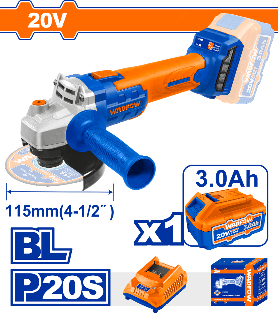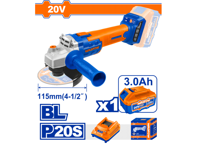 AMOLADORA A BATERIA 20V C BAT 3AMP Y CARGADOR WADFOW WLAPM21