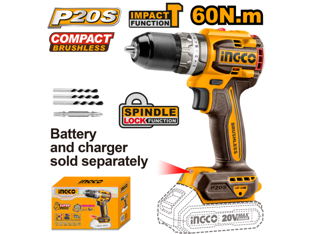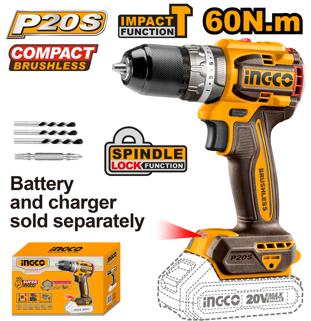 ATORNILLADOR A BATERIA C PERCUTOR 20V SIN BAT SIN CARGADOR COMPACT CIDLI206021 INGCO