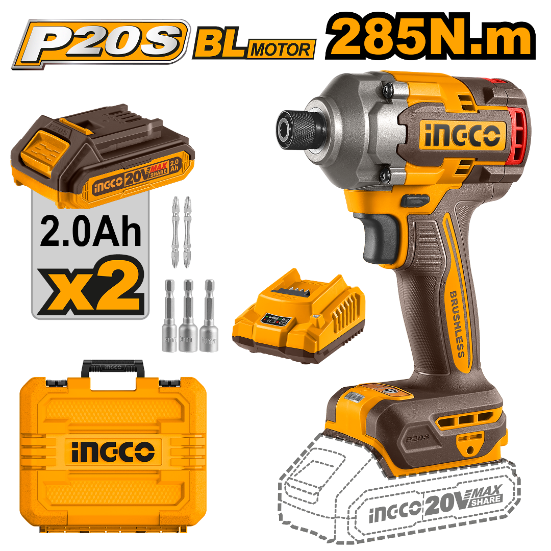 ATORNILLADOR DE IMPACTO A BATERIA 20V P20S CON 2 BAT CARG + VALIJA INGCO  CIRLI2028