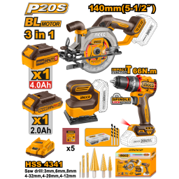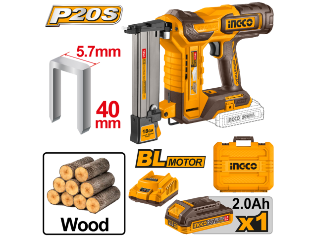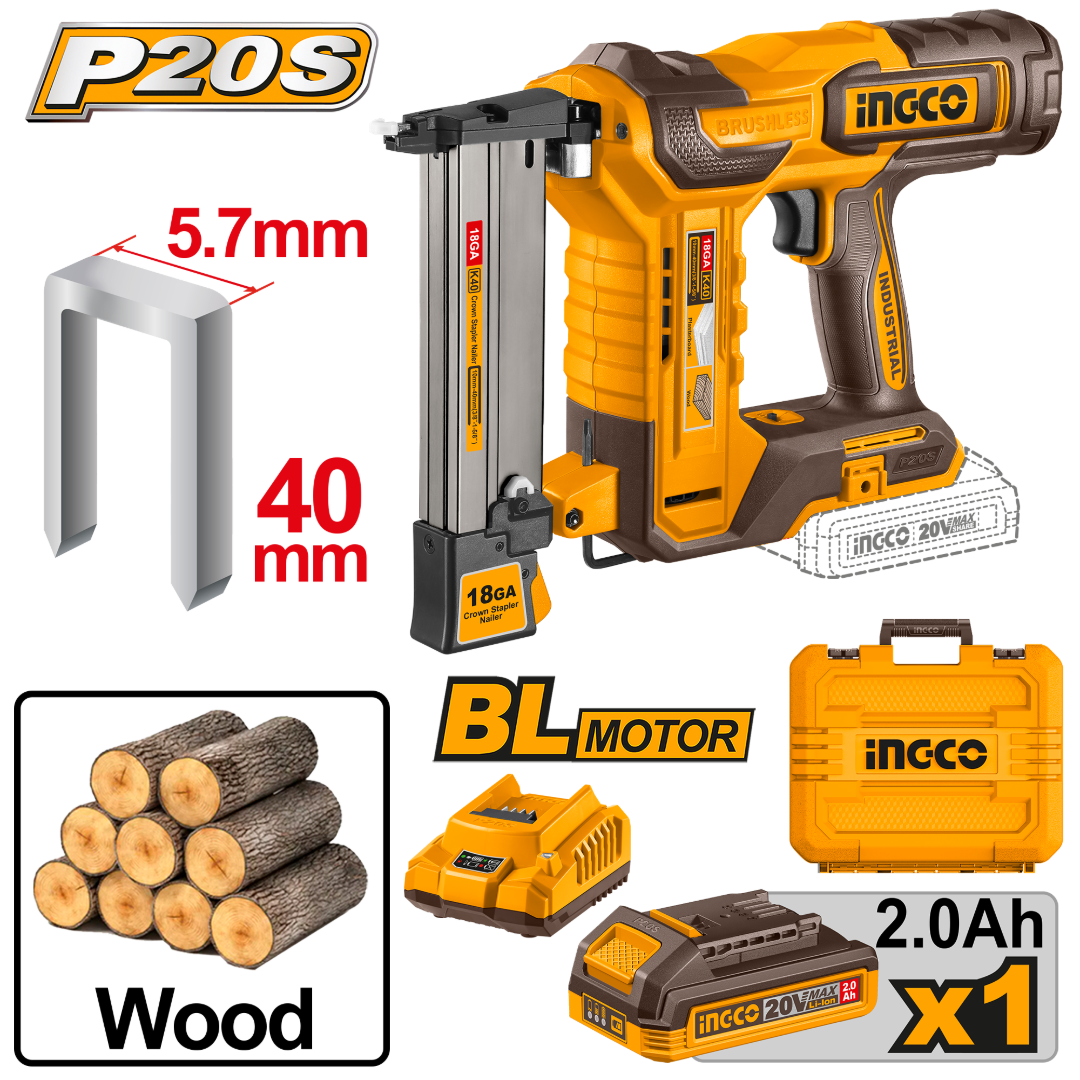 ENGRAMPADORA A BATERÍA 20V P20S 40MM BRUSHLESS C/BATERÍA, CARGADOR, VALIJA Y ACCESORIOS INGCO CCSNLI6008