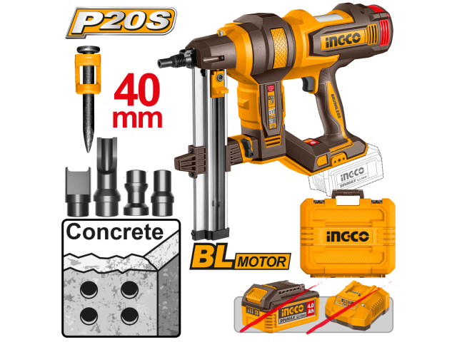 CLAVADORA P/CONCRETO A BATERIA 20V 40MM BRUSHLESS S/BAT S/CARGADOR CON ACCESORIOS + VALIJA INGCO
