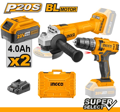 KIT ATORNILLADOR 20V + AMOLADORA ANGULAR 20V A BATERIA INGCO CKLI20157 P20S