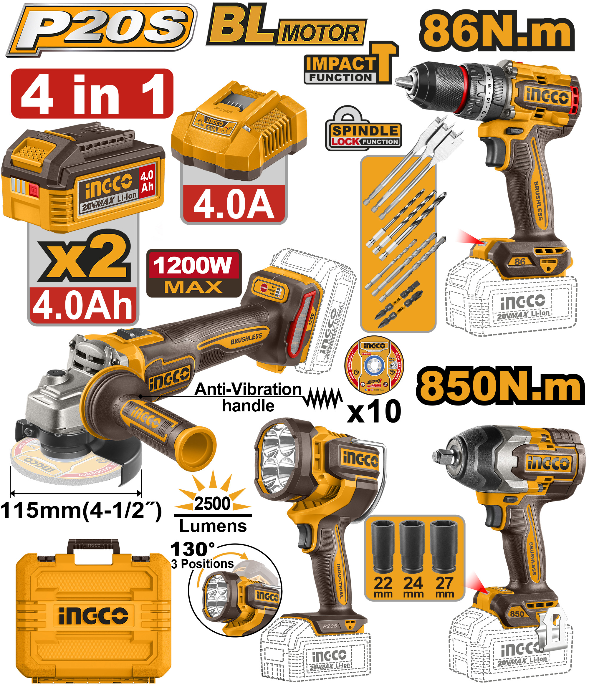 Con llave de impacto inalámbrica de 1 pieza (CIWLI20851)