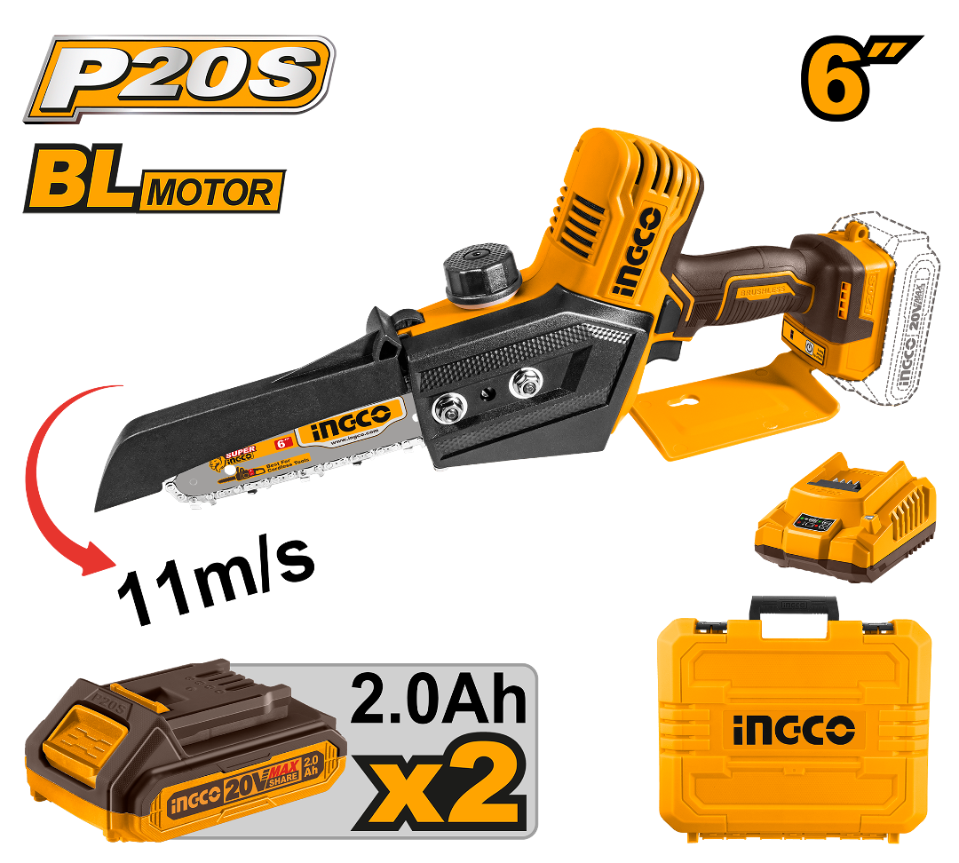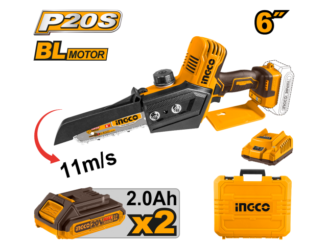 MINI MOTOSIERRA A BATERIA 20V P20S 6" C 2 X BAT CARG Y VALIJA BRUSHLEES INGCO CGSLI20686