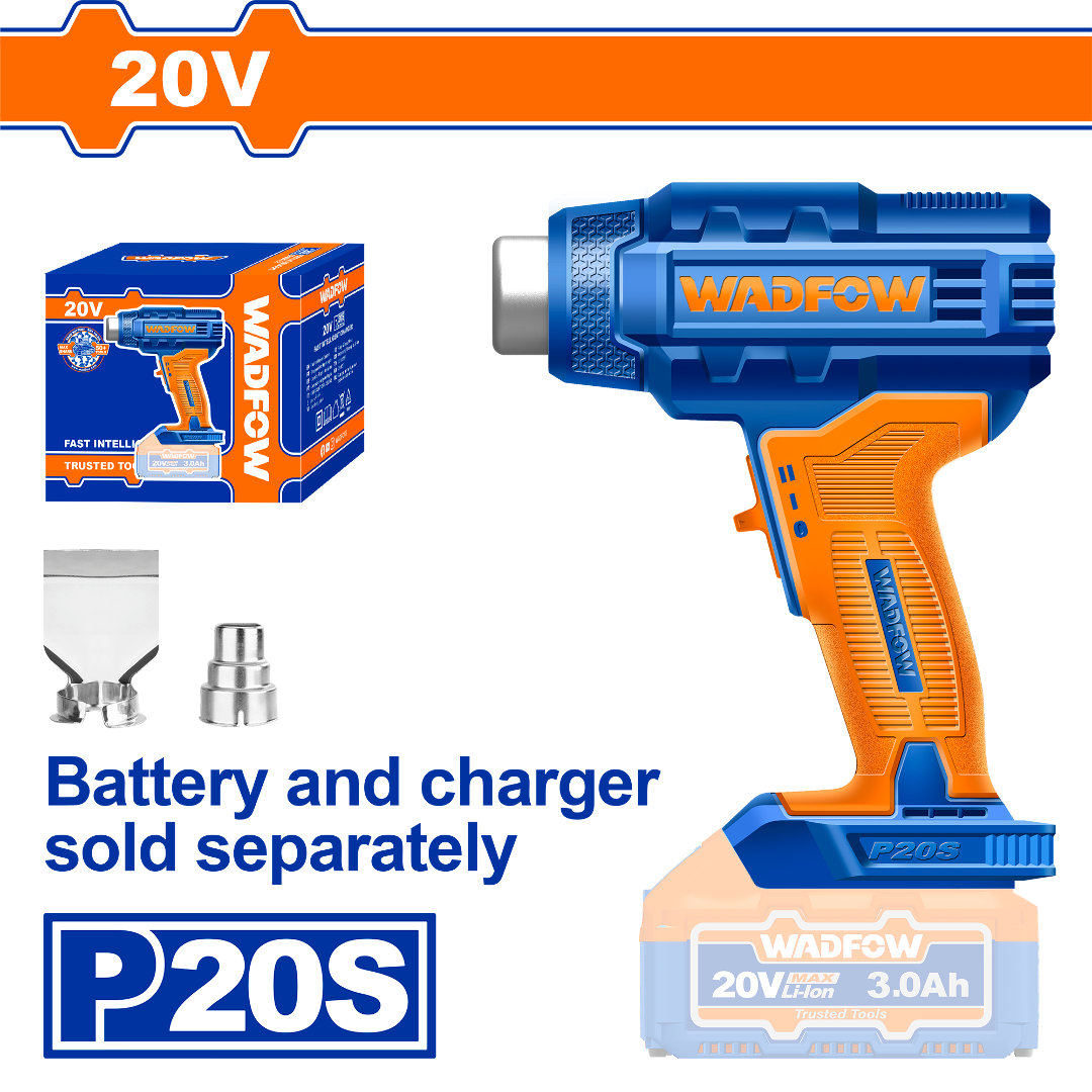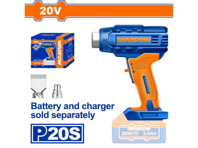PISTOLA DE CALOR WADFOW A BATERIA 20V P20S 300/550°C 100/200 L/MIN WKH1501