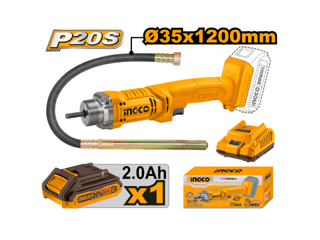 VIBRADOR DE CONCRETO A BATERIA 20V P20S C FLEXIBLE BAT Y CARGADOR INGCO CCVLI2023011