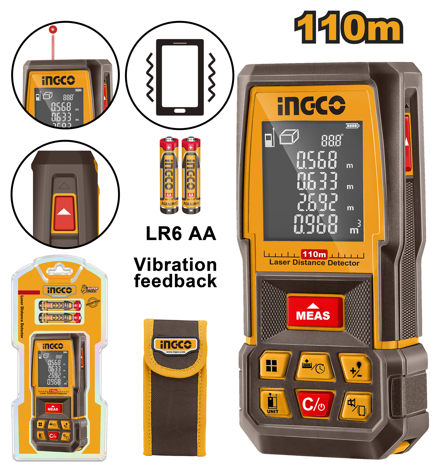 MEDIDOR DE DISTANCIA LASER 110MTS C/ESTUCHE INGCO HLDD10089