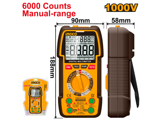 -DC Voltage:600mV/6V/60V/600V/1000V