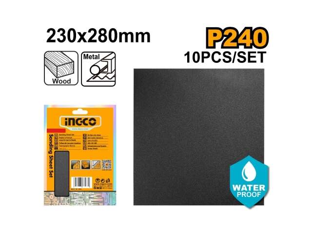 SET LIJA AL AGUA GRANO 240 X 10U INGCO AKHS11240