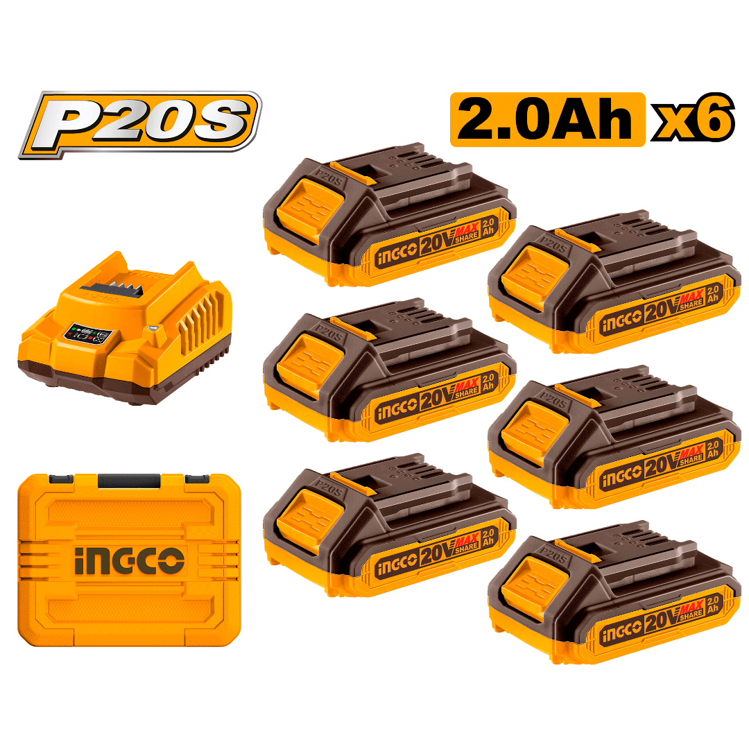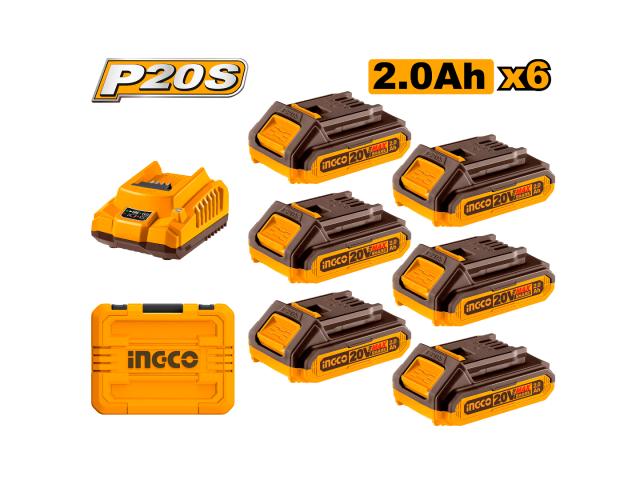 SET X 6 BATERIAS 2.0AH + CARGADOR EN VALIJA - FBCLI20611 INGCO
