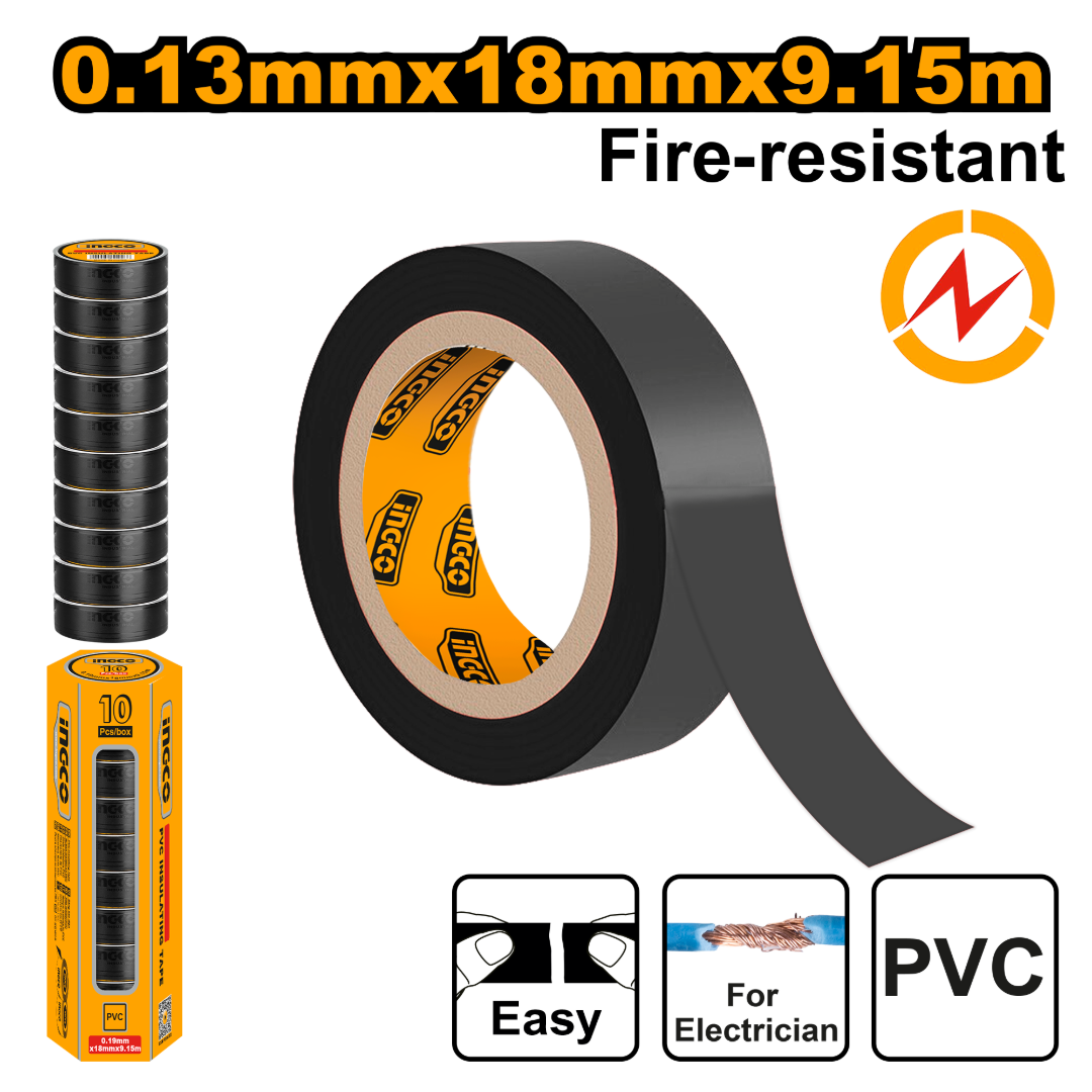 CINTA AISLADORA NEGRA X 10 UNIDADES INGCO - HPET1103