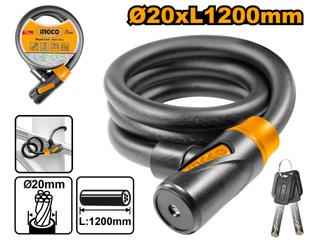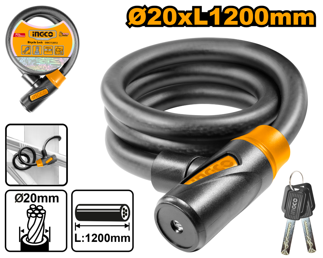 CANDADO PARA BICICLETA 20X1200MM C/2 LLAVES INGCO DBK112012