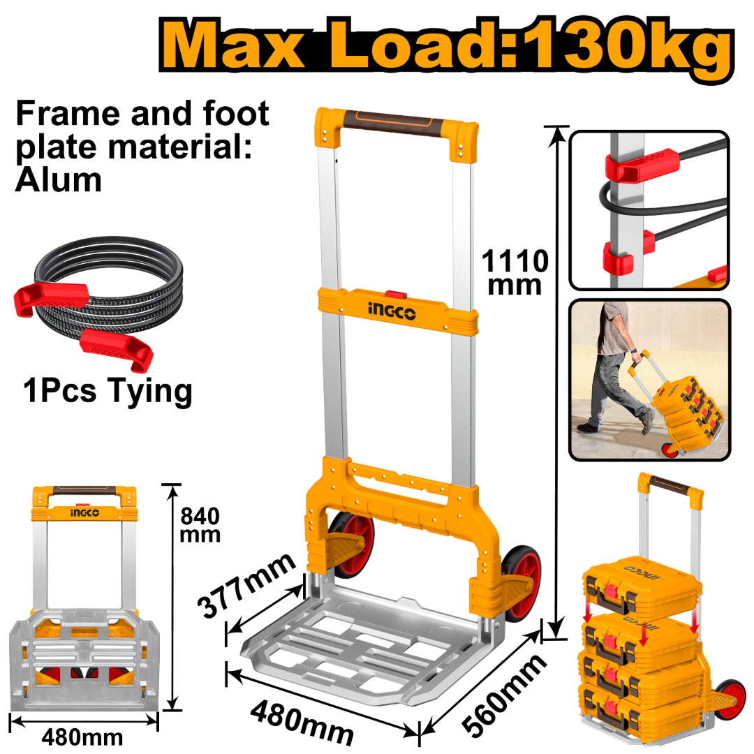 CARRO DE CARGA PLEGABLE P/ VALIJAS PLASTICAS INGCO APILABLE 130KG