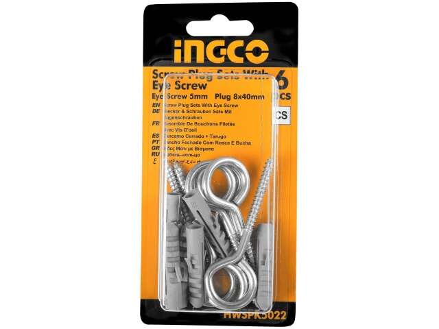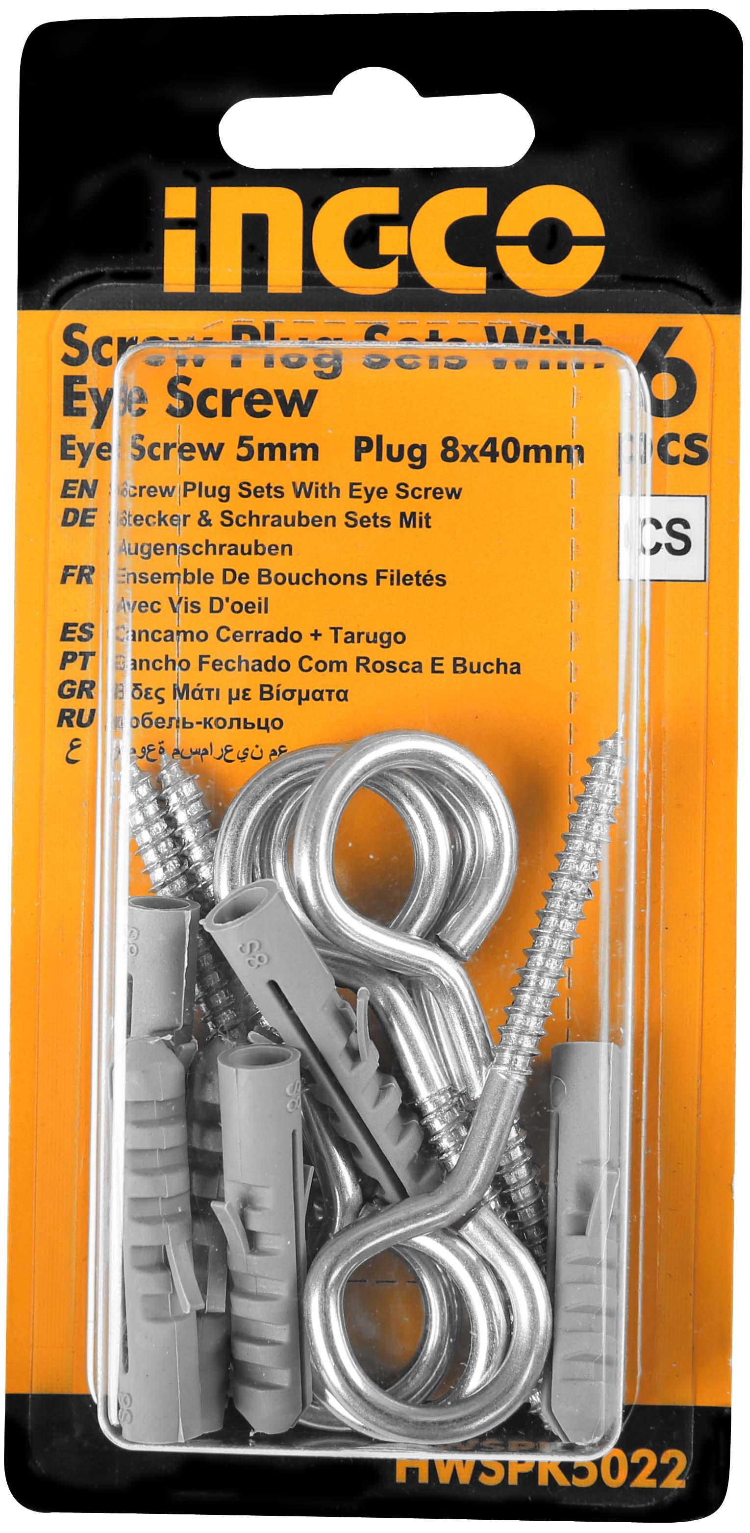 Tornillo de ojo de 5 mm 8x40Tapón de rosca de plástico color gris 6 juegos por tarjeta de la ampolla