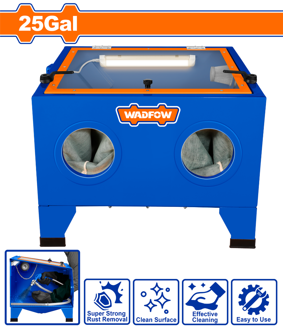 -Capacidad de la cabina de chorro de arena: 25 galones.