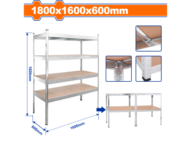 ESTANTERIA 4 NIVELES AJUSTABLES 1600×600×1800MM WADFOW WTS1A16