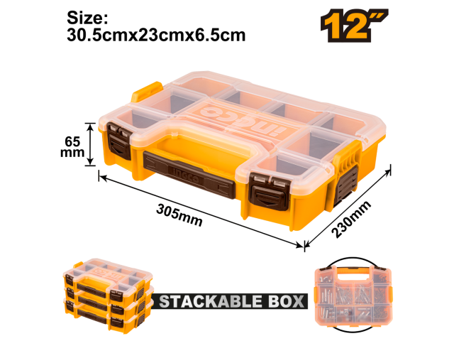 ORGANIZADOR PLASTICO 12" APILABLE CON DIVISORES REMOVIBLES INGCO PBX1211