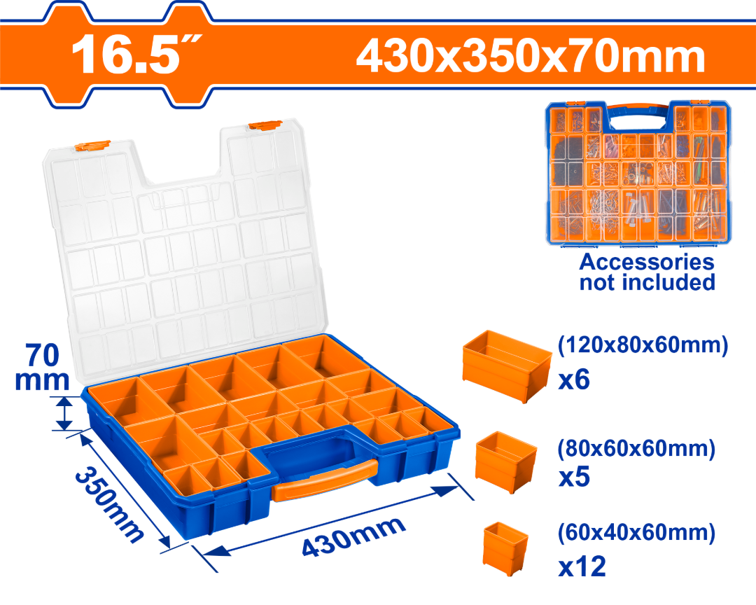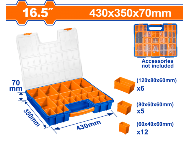 ORGANIZADOR PLASTICO 16.5"" CON 12 COMPARTIMIENTOS REMOVIBLES WADFOW WTB1611