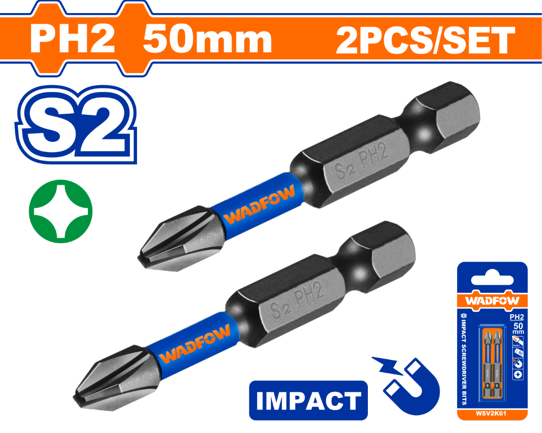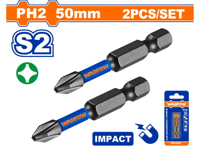 SET X2 PUNTAS IMPACTO PH2 50MM ACERO S2 WADFOW WSV2K61
