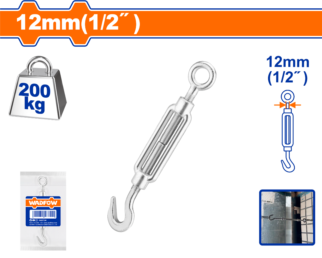TENSOR DE CABLE GANCHO-ANILLO 1/2" 200KG WTHE1312 WADFOW