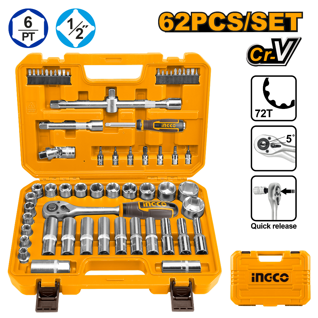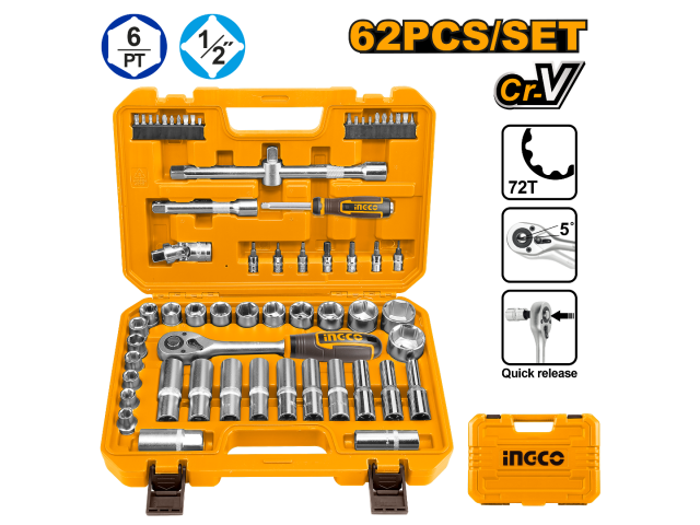 JUEGO DE DADOS Y PUNTAS 62PCS 1/2"