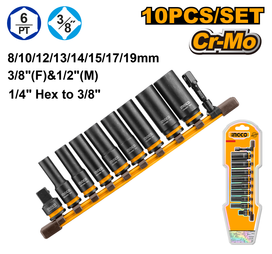 -8 llaves de vaso de impacto profundo de 3/8" DR: 8/10/12/13/14/15/17/19 mm