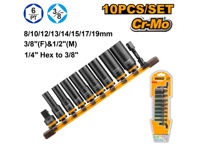 SET X10 DADOS DE IMPACTO 3/8" CR-MO HKISSD38105L