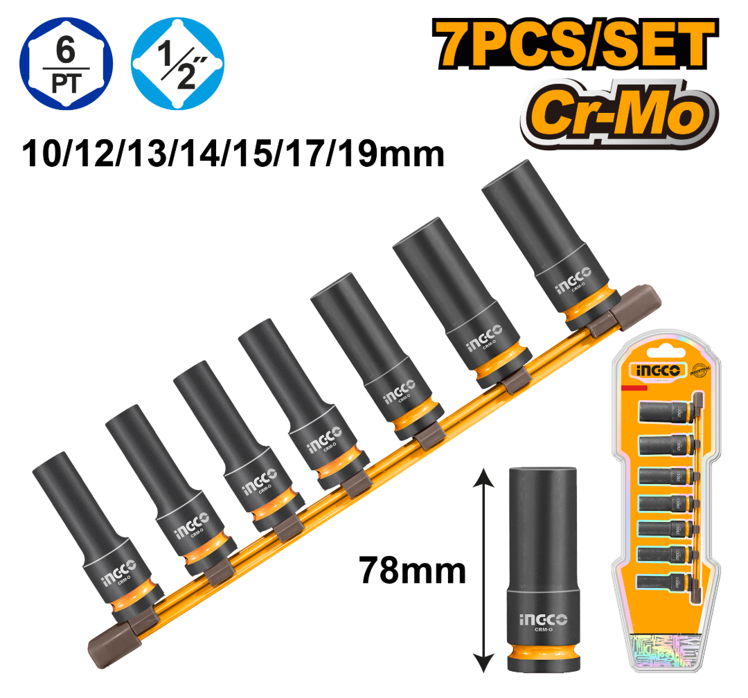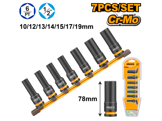 SET X7 DADOS DE IMPACTO 1/2" CR-MO PROFUNDOS INGCO HKISSD12072L
