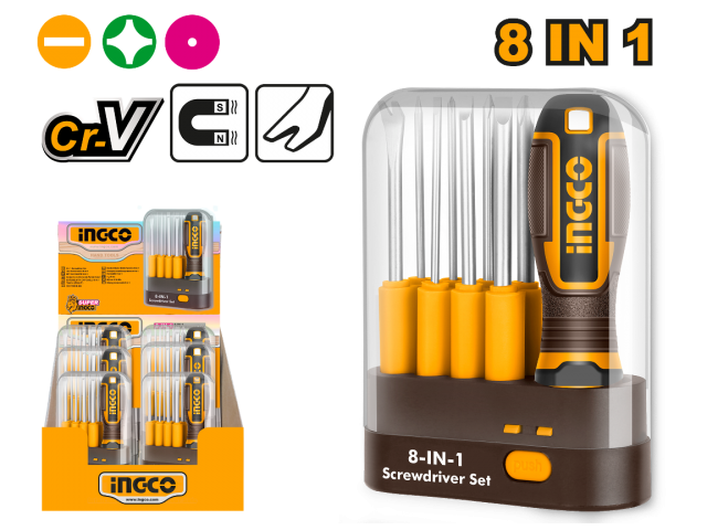 DESTORNILLADOR 8 PUNTAS IMAN INTERCAMBIABLES INGCO AKISD0901