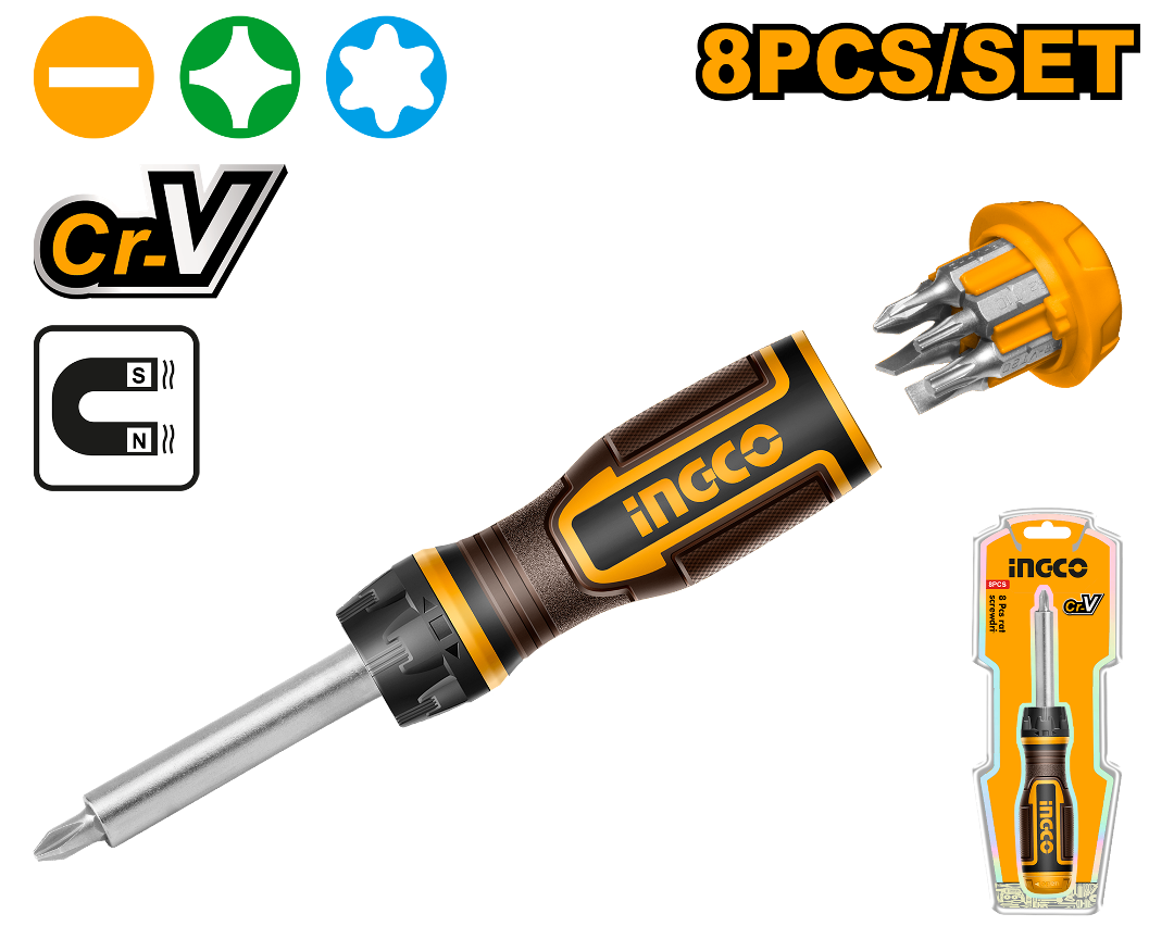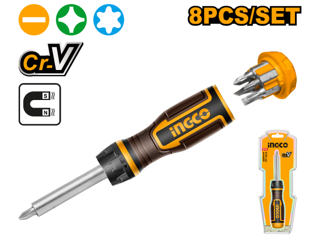 DESTORNILLADOR 8 PUNTAS INTERCAMBIABLES INGCO AKISD0808