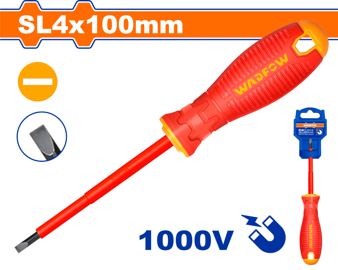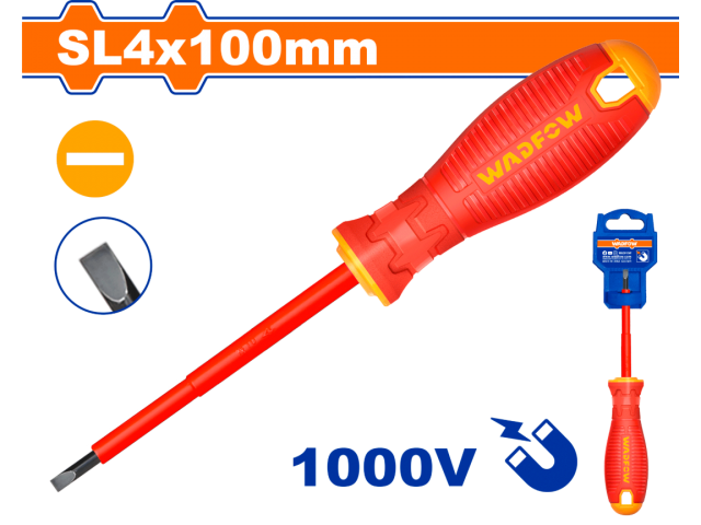 DESTORNILLADOR PALETA AISLADO 1000V SL4.0 X 100MM MANGO ERGONOMICO WADFOW WSD7244