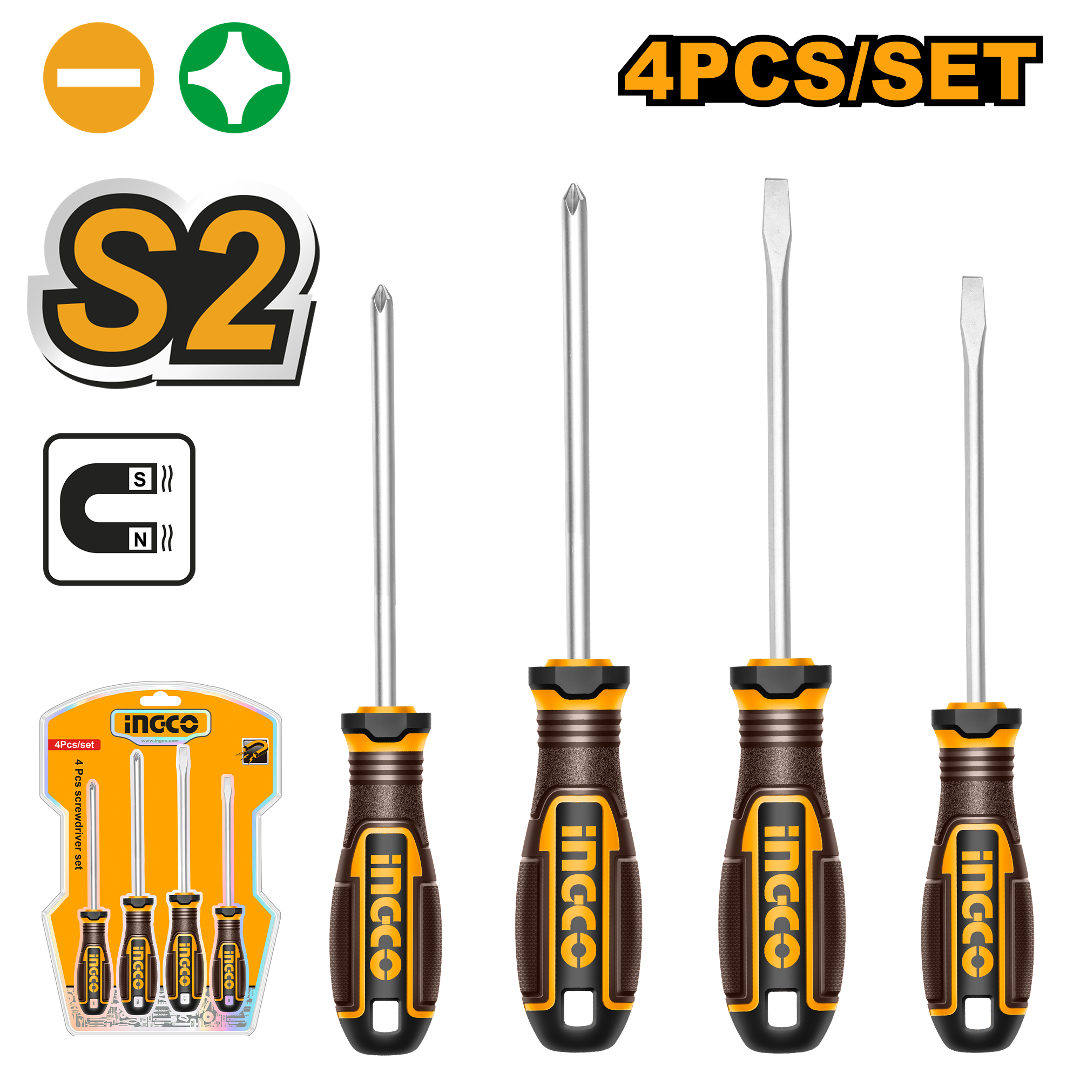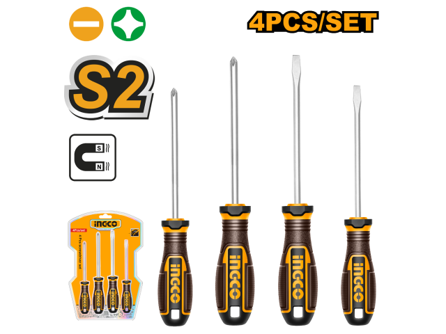 SET X 4 DESTORNILLADORES S 2 PALETA/ PHILLIPS IMANTADO INGCO HKSDS0428