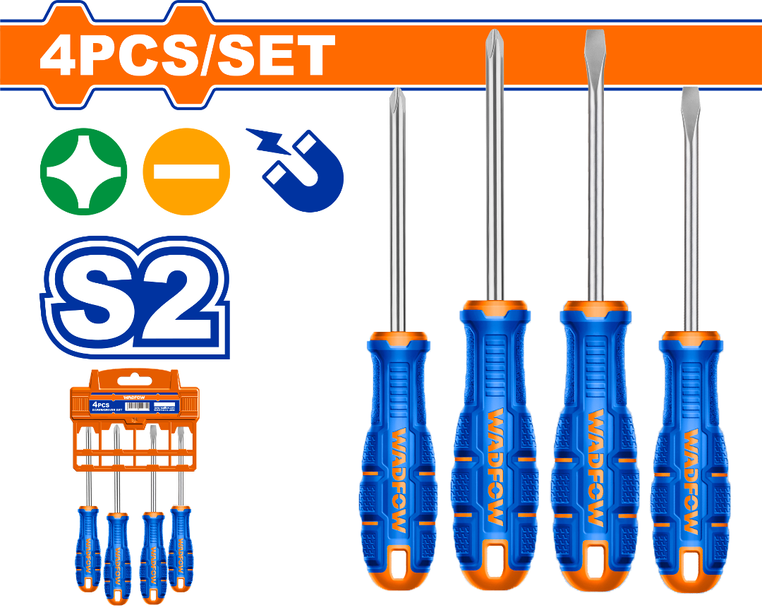 SET X 4 DESTORNILLADORES S2 PALETA/PHILLIPS IMANTADO WADFOW WSSA404