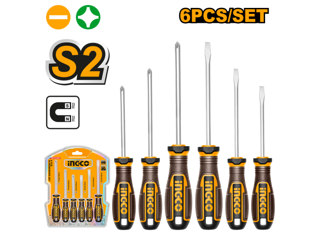 SET X 6 DESTORNILLADORES S2 PALETA/PHILLIPS IMANTADO INGCO HKSDS0628