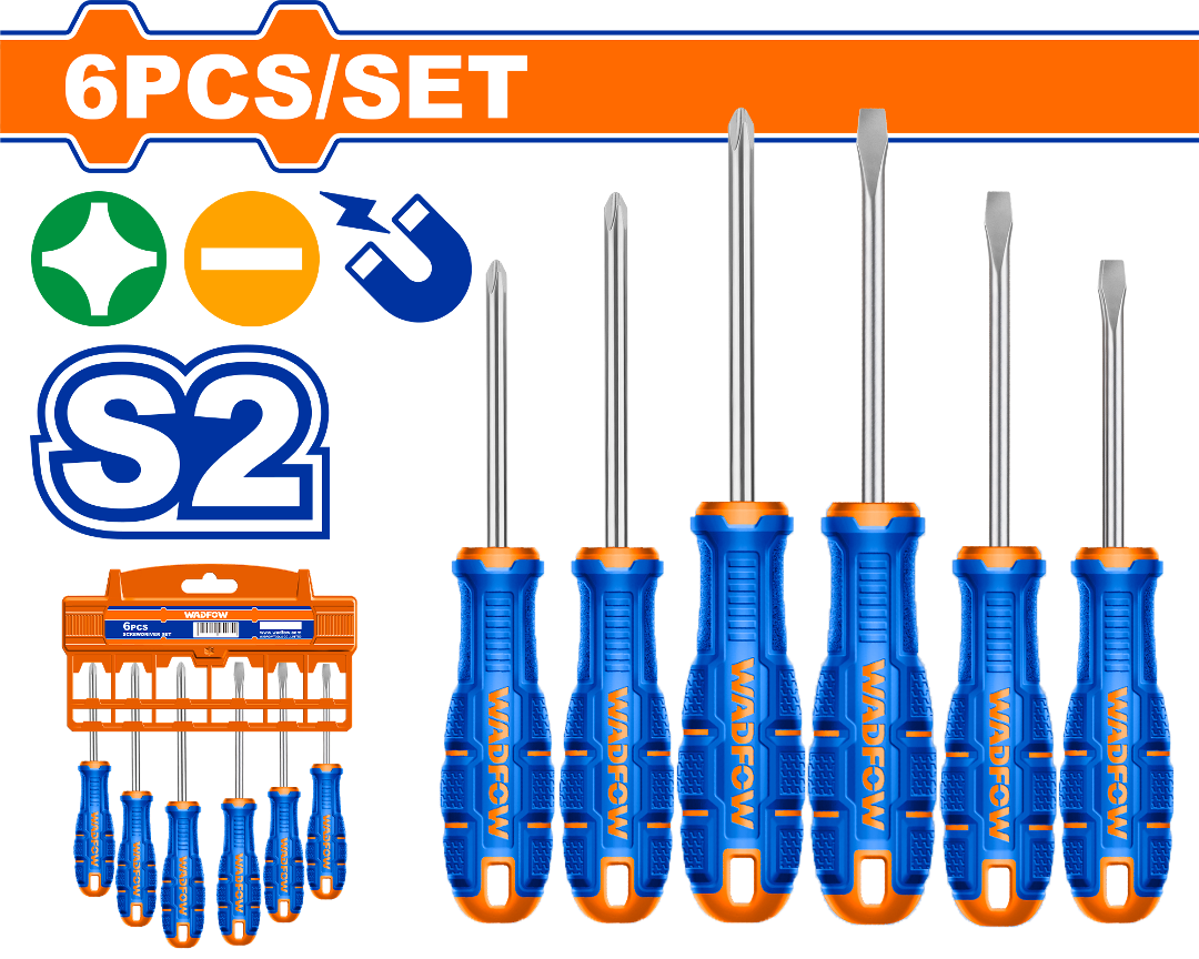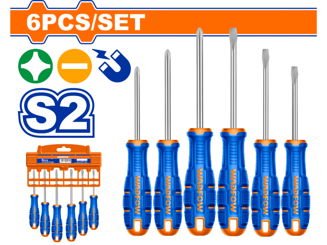 SET X 6 DESTORNILLADORES S2 PALETA/PHILLIPS IMANTADO WADFOW WSSA406