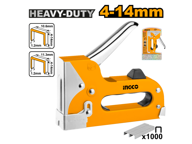 Grapadora de trabajo pesado Alambre 1.2mm Corona 10.6 mm o 11.3 mm Longitud 4-14mm Con clavos 1000pza Embalado por doble ampolla