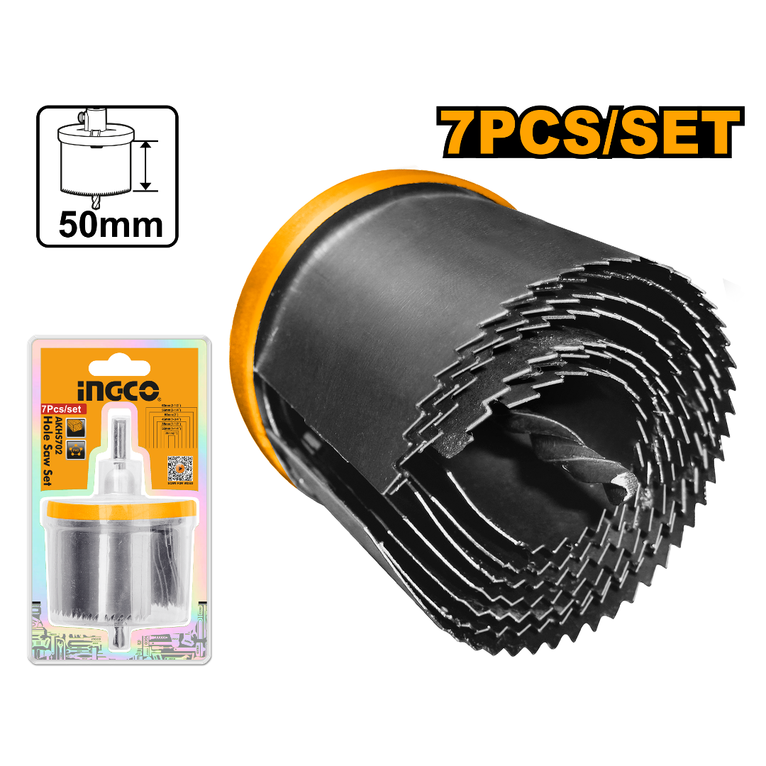 Juego de sierra para agujeros de 7 pza Diámetro de la sierra de perforación 26, 32, 38, 45, 50, 56, 63 mm Altura 50 mm (2 ") Embalado por doble ampolla